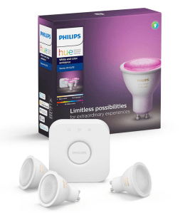 I chose Philips Hue not only for the sheer amount of different smart lighting options to choose from, but the different hues of light, and the verity in colours looked incredible. In fact there’s 16 million different colours to choose from, all controlled via the Philips hue bridge, a wireless hub that you link up to an app on your phone.